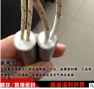 一般用于高溫用途,耐溫可到500度,高的可到1500度。比如高溫套接密封,法蘭連接處高溫密封,這種無機(jī)高溫膠往往需要加熱固化,強(qiáng)度不算高,做一般的填充密封和固定定位的較多。很多高溫傳感器、高溫過濾器、單頭電熱管、電廠焚燒爐、冶煉廠高溫爐等應(yīng)用較為廣泛。例如電熱管封口使用的: