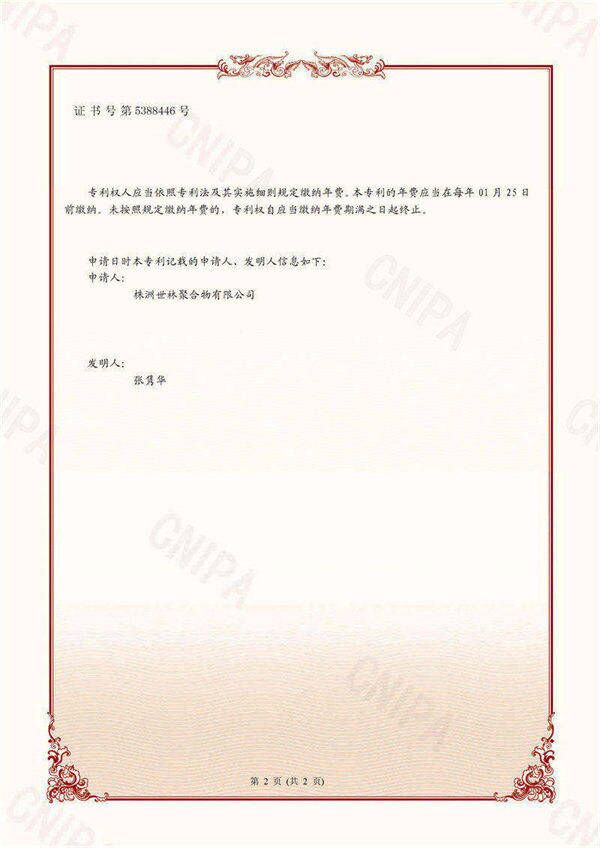 近日,株洲世林聚合物有限公司自主研發(fā)并申報(bào)的《一種耐高溫?zé)o機(jī)膠及其制備方法》(專利號(hào)ZL 2021 1 0095861.2 )獲得國(guó)家知識(shí)產(chǎn)權(quán)局頒發(fā)的發(fā)明專利證書!